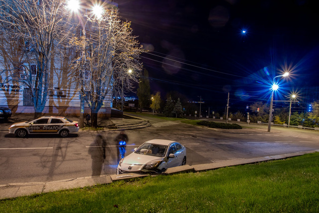 2 ноября, около 2:00, на проспекте Яворницкого, 2, автомобиль Mazda врезался в ограждение. После столкновения водитель авто сбежала.