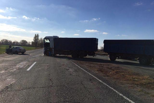 6 ноября под Днепром — в районе поселка Песчанка — автомобиль Renault столкнулся с грузовиком. От удара легковушку вынесло на встречную полосу движения, а большегруз развернуло поперек дороги.