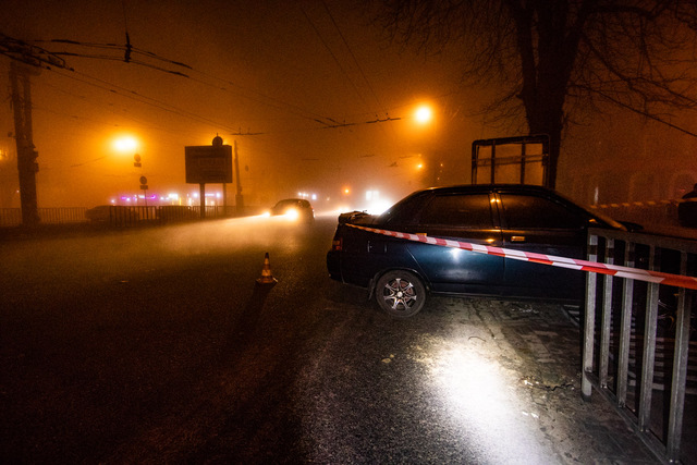 Как рассказали патрульные со слов водителя, автомобиль двигался по проспекту Поля и хотел повернуть на Титова. Водитель не увидел ограждение из-за тумана и врезался сначала в ограждение, а затем повалил светофор.