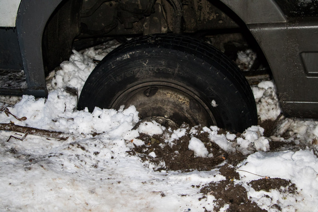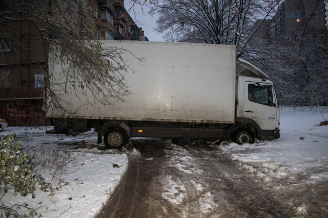 Инцидент произошел между домами № 164 и № 162. Как рассказали местные жители, еще на месте работал КП «Днепрводоканал». Коммунальщики вырыли яму для того, чтобы добраться до нужной трубы, после чего, окончив работу, засыпали ее песком.Водитель грузовика, выгрузив товар в магазин, уже собирался выезжать со двора, как угодил передними колесами в яму, которую не заметил под снегом. Автомобиль загруз в дыре настолько, что самостоятельно мужчина выехать не смог. В данный момент он приподнял автомобиль домкратом и ждет, пока приедет начальник. После этого они решат — вытягивать грузовик с помощью троса либо вызывать манипулятор.