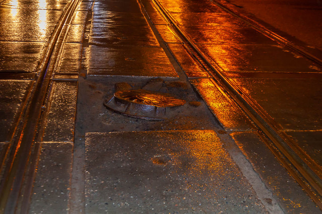 Люк провалился между трамвайными колеями.Яма достаточно глубокая, чтобы погнуть диск. Водители попавшие в яму вызвали патрульных. Обошлось без пострадавших.