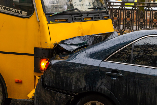 14 декабря на проспекте Дмитрия Яворницкого маршрутка № 146Б смяла багажник легковушке. Из-за аварии временно заблокировано движение троллейбусов.