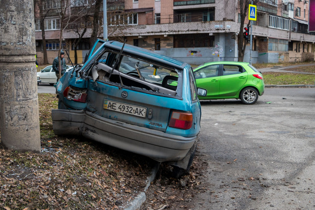 Mazda въехал в бок Opel, после чего второй автомобиль развернуло и откинуло на обочину в столб.
