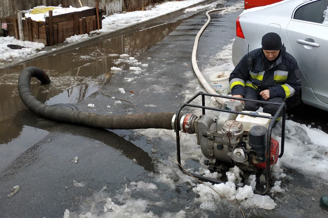 Особовим складом пожежно-рятувального підрозділу за допомогою мотопомпи «Honda WT-40X» відкачано воду з підтопленої території до каналізаційної мережі міста.