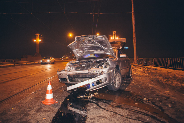 Авария заняла целую полосу, а потому автомобили, едущие в сторону правого берега, должны объезжать по трамвайным путям. Патрульные оградили место аварии.