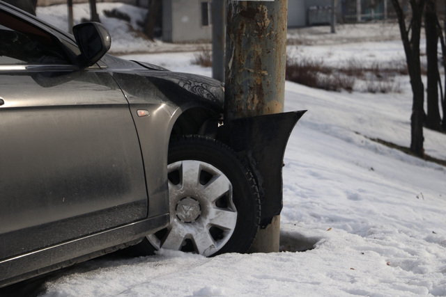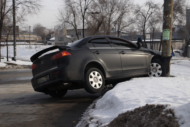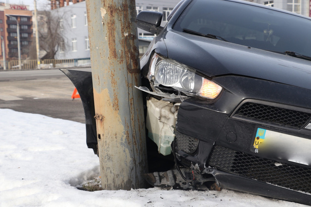 20 января на съезде с виадука на Слобожанском проспекте автомобиль Mitsubishi «влетел» в столб. Водитель остался цел и невредим, чего не скажешь про его авто.
