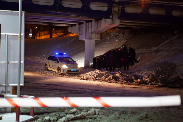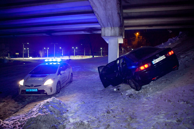 Протаранив шлагбаум, водитель Honda вылетел под виадук и столкнулся с бетонной опорой виадука. Пока очевидцы вызывали на место полицию, мужчина успел благополучно скрыться.