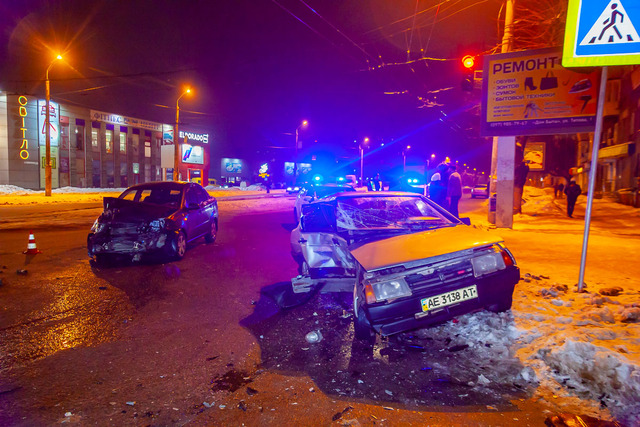 Как рассказали патрульные, ВАЗ ехал по проспекту Хмельницкого в сторону центра, а ЗАЗ — в противоположном направлении. Когда ВАЗ поворачивал с проспекта на улицу Титова, автомобили столкнулись. По словам очевидцев, ЗАЗ двигался на зеленый сигнал светофора. Машины сильно развернуло от удара, а ВАЗ выбросило на тротуар. Осколки от автомобилей разлетелись на несколько метров по дороге.