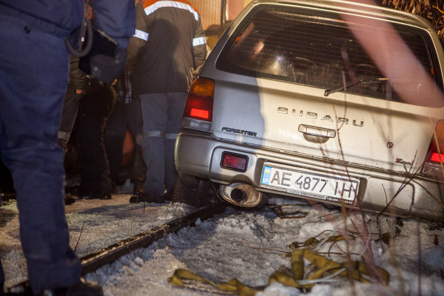 В Днепре на ДЗМО тепловоз снес Subaru и протащил ее 70 метров