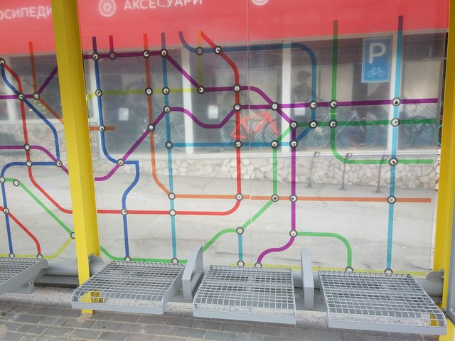 Но потом глаз цепляется за схему транспорта наклеенную на стекле и начинает искать детали уже там и быстро их находит.