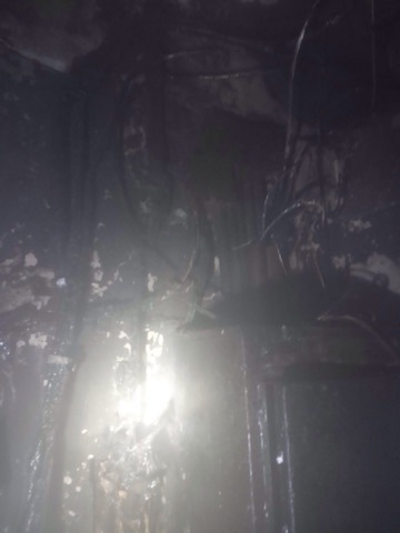 Огнем уничтожен электрокабель в электрощитовой длиной 5 пог. м. и повреждена мебель в подвале здания на площади 50 м2.