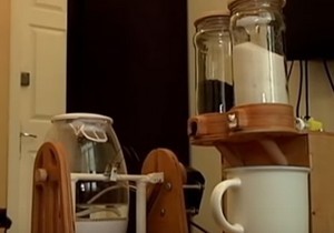 "Жена пришла, щелкнула на чайник - все. И он сам насыпал, сколько она любит чая, сахара. Чтобы оставалось только подойти, забрать чашку. Такая автоматизация", - говорит изобретатель.Мастерил устройство Игорь несколько недель. Сделал чертежи, подобрал детали. Контроллеры, процессоры, провода и моторчики спрятал в небольшой деревянной шкатулке.