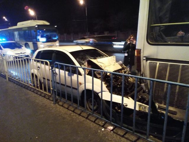 Во вторник, 26 февраля, около 20:15 автомобиль Ford протаранил автобус, который используют для пассажирских перевозок.