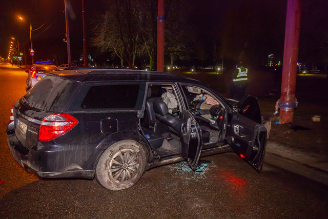 27 февраля, около 5:00, на улице Маршала Малиновского случилось ДТП. Subaru влетел в столб. Первыми аварию увидели таксисты.