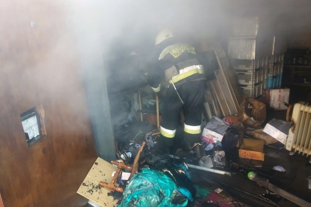 Огнем повреждено старое домашнее имущество в гараже на площади 5м.кв.
