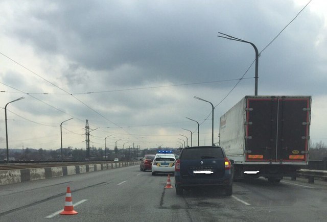 Сегодня, 15 марта, около 14:00 на Кайдакском мосту произошло дорожно-транспортное происшествие с участием грузовика и автомобиля «Рено». Об этом сообщают очевидцы в соцсетях.