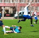 «У нас ніколи не було такої шикарної бази для тренувань. Це поле, порівняно з тим, що мали раніше, – небо і земля. Тут були ґрунт і трава, натомість тепер – ідеальне рівне покриття», – розповів гравець «Надії» Артем Лях.Вже з перших хвилин гри команда облдержадміністрації почала створювати гольові моменти біля воріт суперника. Голкіперові господарів було нелегко. Команда у білій формі постійно йшла уперед. У кам’янчан залишалася лише надія на контратаки, та реалізувати їх не давали більш досвідчені гості. Вже на початку другого тайму рахунок – 2:0 на користь гостей. Друга половина гри проходила значно цікавіше за першу. Господарі також показали себе, змінивши рахунок на 2:1. Протягом гри було багато замін. Від бажаючих зіграти і за одну, і за іншу команду не було відбою. Всі хотіли спробувати новеньке якісне покриття. Матч завершився рахунком 3:1. Після гри команда Дніпропетровської облдержадміністрації подарувала футболістам із «Надії» м’ячі.