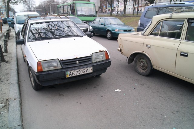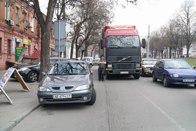 Volvo ехал в сторону «Озерки». По словам водителя грузовика Виталия, он не рассчитал габариты: «Кабина прошла нормально, а прицеп — нет». В результате пострадало 5 автомобилей. Некоторые водители припаркованных авто не имели претензий к Виталию, а вторая часть решила вызвать полицию и оформлять ДТП.