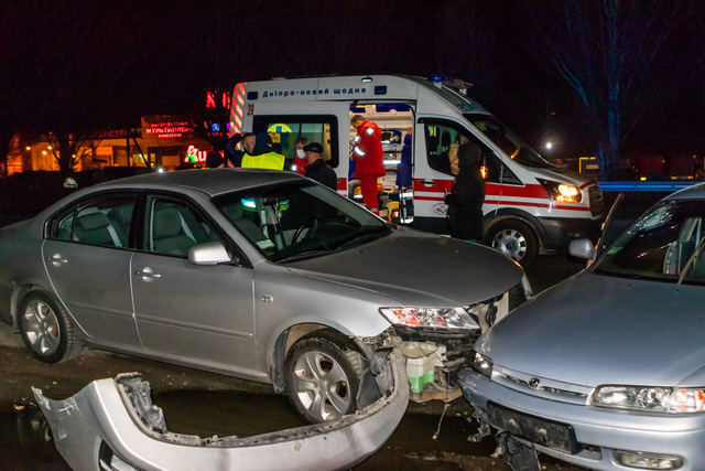 26 марта приблизительно в 23:30 на Донецком шоссе, напротив ТРЦ «Караван», столкнулись Mazda и Kia. На место аварии немедленно прибыли экипаж патрульной полиции и скорая.