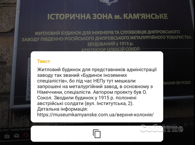 На исторических зданиях Каменского начали появляться новые таблички. Благодаря нанесенному на них QR-коду, с помощью смартфона или любого другого устройства, считывающего кодировку, можно узнать больше об истории города.