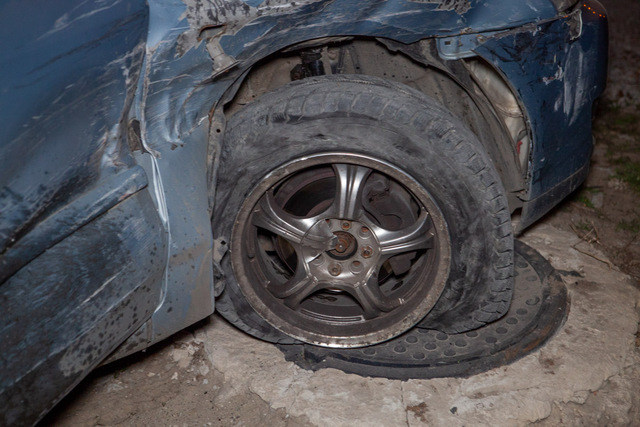 Отметим, что сам факт того, что он пытался скрыться, граничит с фантастикой: у автомобиля было пробито правое переднее колесо и передвигался он практически на диске.