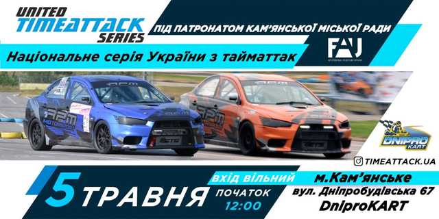 5 травня на картодромі «Dnipro Kart» стартує перший етап кільцевих перегонів Української національної серії з тайм аттак United Time Attack Series. Початок перегонів о 12.00. Вхід вільний.
