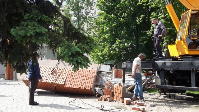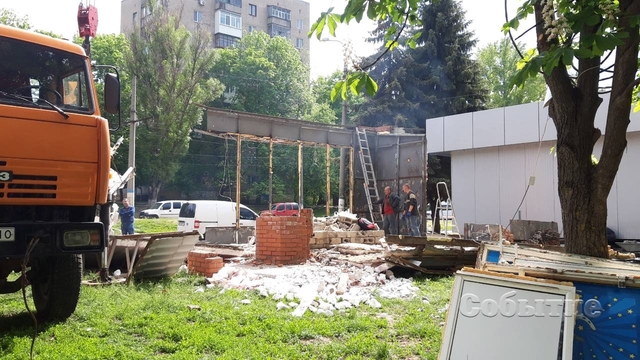 Демонтаж МАФа с вывеской "Національна лотерея" проводился по пр. В.Стуса в районе дома № 20 8 мая.