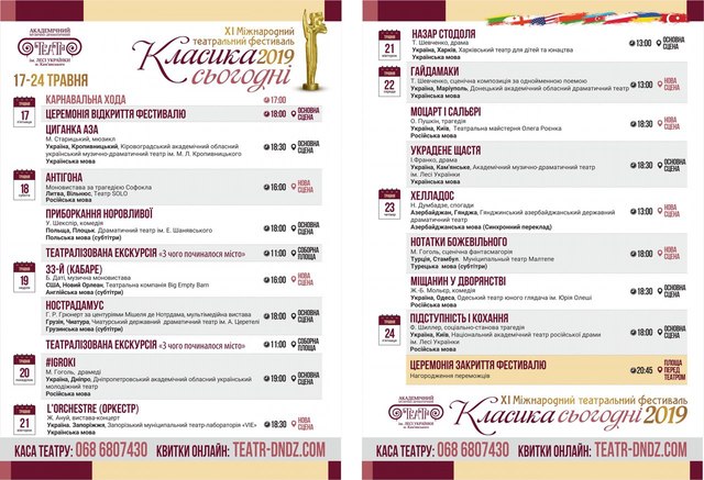 З 17 по 24 травня у Кам’янському за сприяння міського голови Андрія Білоусова пройде XI Міжнародний театральний фестиваль «Класика сьогодні».