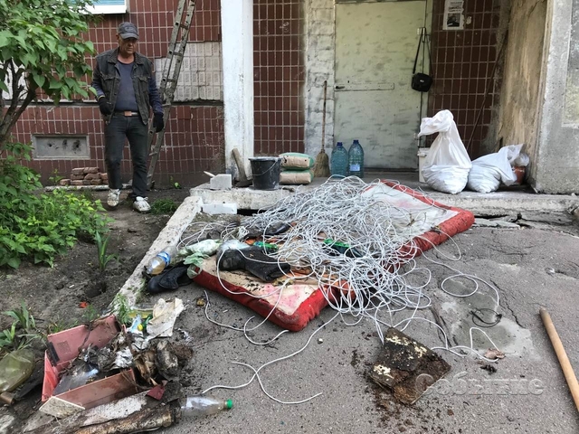 Нерадивые жильцы использовали козырек подъезда как мусорный бак, выбрасывая на него разнообразный хлам, начиная от частей мягкой мебели и заканчивая документами и своими личными вещами.