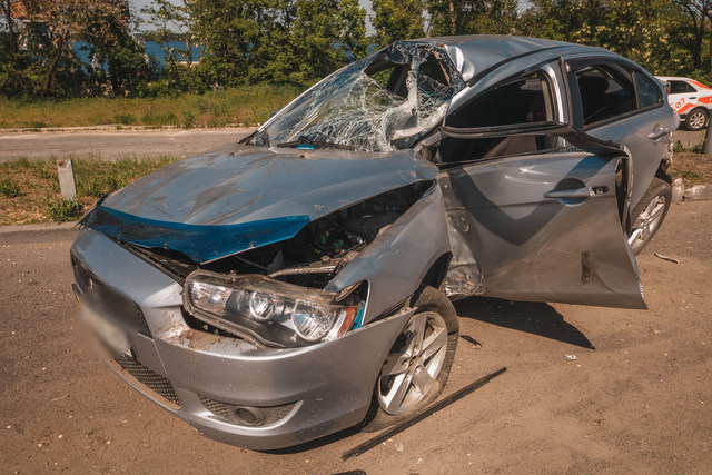 В Днепре на Набережной Заводской Mitsubishi врезался в столб: есть пострадавшие