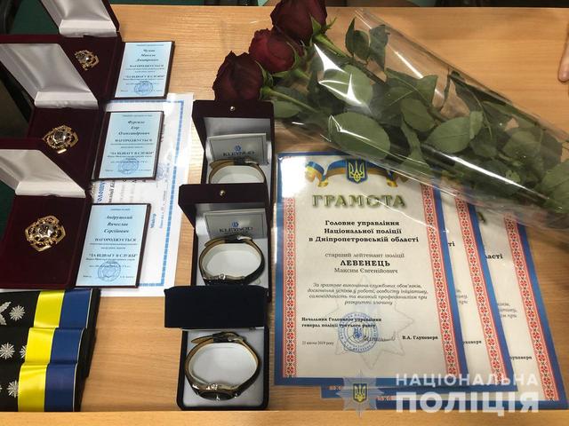 Начальник ГУНП в Дніпропетровській області Віталій Глуховеря вручив співробітникам поліції грамоти та іменні годинники. Також наказом Національної поліції України поліцейським присвоєні чергові спеціальні звання.