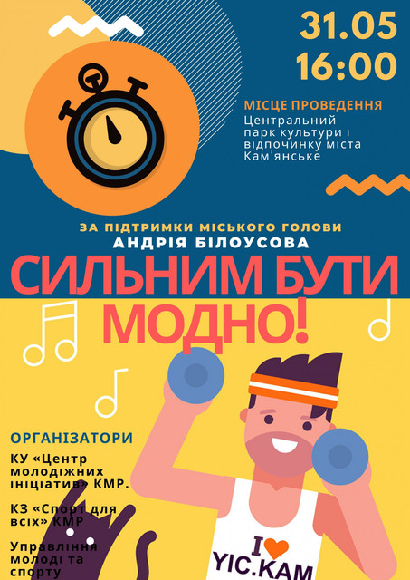 В пятницу, 31 мая, в Центральном парке культуры и отдыха Каменского при поддержке городского головы Андрея Белоусова состоится спортивно-массовое мероприятие - «Сильным быть модно».
