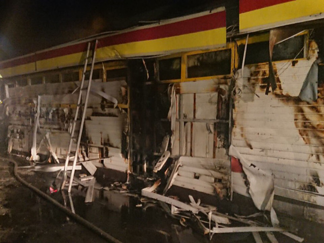 Прибыв на место, пожарные установили, что пожар возник внутри кафе. Огонь уничтожил внешнюю обшивку и утеплитель стен, повреждены внутренняя обшивка стен. Общая площадь пожара 21 кв. м. Пожар локализован в 3:36 и ликвидирован в 3:54.