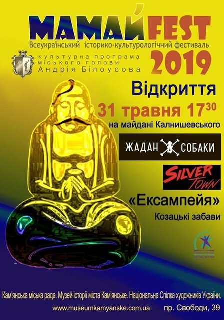 Фестиваль начнется в 10.00 на примузейной площади. Официальное открытие «Мамай-Fest» начнется 31 мая в 18.00 на площади Калнышевского концертной программой. Впервые в Каменском выступят группы «Жадан и Собаки» и «Ексампейя».