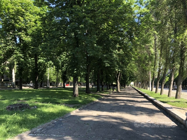 Прогуливаясь вверх по скверу, мы видим уютные места для отдыха с комфортными лавочками. Подходя ближе к верхней части сквера, мы видим красивую клумбу в виде герба Украины. Конструкция клумбы будет сделана таким образом, чтобы тризуб был виден как с высоты, так и по ходу движения вверх по скверу.