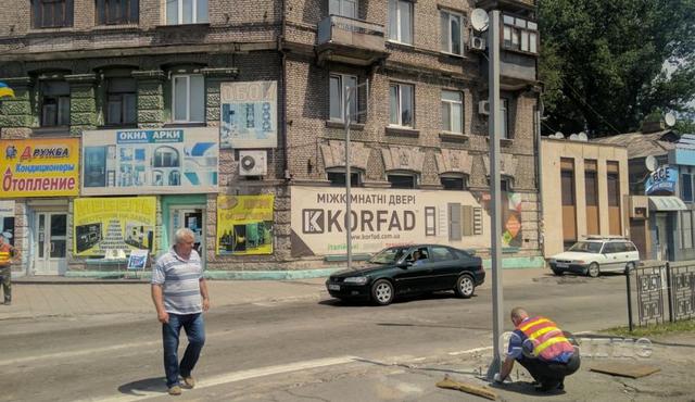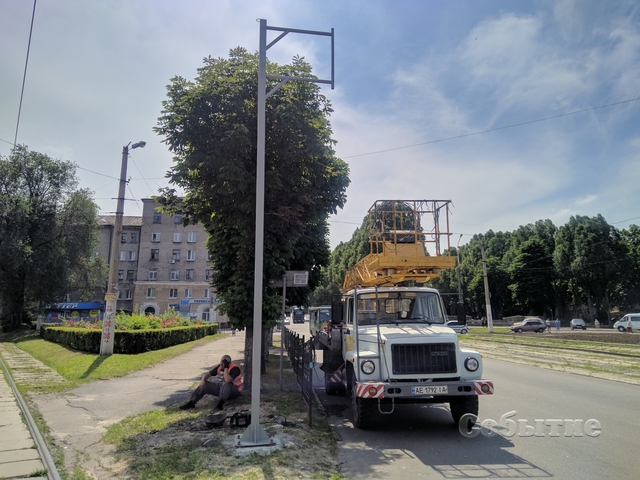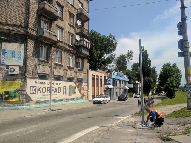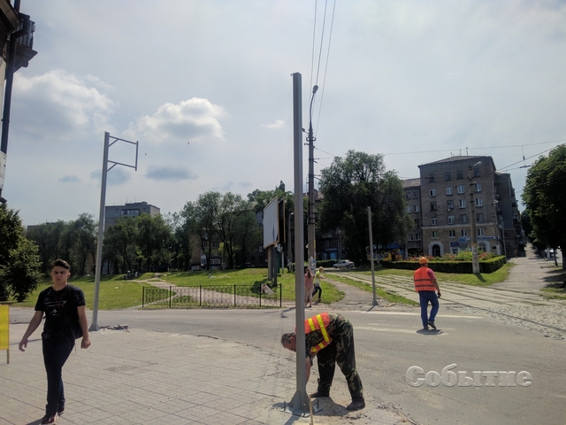 Установка опор под светофорные объекты стартовала на пересечении проспектов Свободы и Аношкина в первой половине дня 3 июня в Каменском.