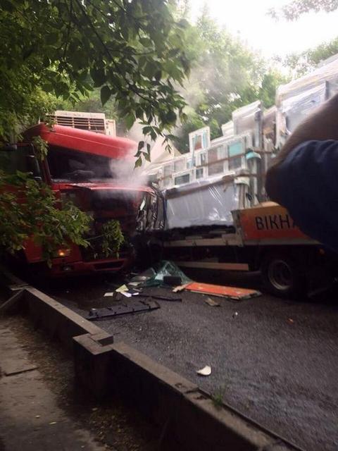 24 июня, около 9:20, в Днепре возле станции Ксеньевка на ж/м Игрень произошло тяжелое ДТП. Две фуры сошлись лоб в лоб.