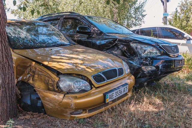 Lexus прижал Lanos к дереву. В ДТП пострадали водитель и 2 ребенка, которые находились в Daewoo. Водителя госпитализировали в 6-ю больницу с подозрением на перелом ребер, а детей — в больницу на Космической, без тяжелых травм. Все находились в сознании.
