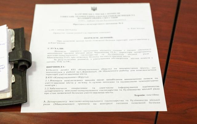 «В такую жару все равно нужно постоянно поливать водой, так как идет выделение метана и, например соседство бумаги с разбитой бутылкой приводит к воспламенению»,- сказал Богдан Наполов.По итогу, было решено позволить КП «Комунальник» провести выемку земли и пересыпание свалки. Работы предприятие будет проводить за свои средства и своими силами. Срок на все про все – две недели, с еженедельным отчетом мэру по средам. Артур Круть пообещал справиться.