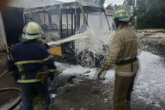 23 июля в 12:45 в Службу спасения "101" поступило сообщение о том, что в городе Марганец на улице Единства, на временной остановке в середине автобуса возник пожар.