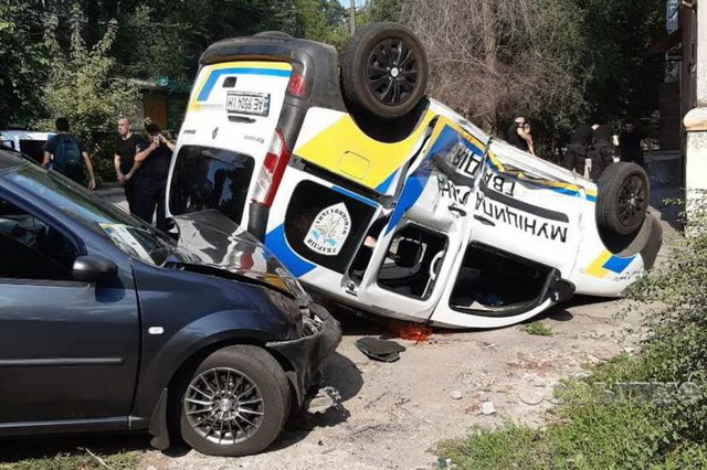 В Каменском автомобиль Муниципальной гвардии попал в ДТП и перевернулся