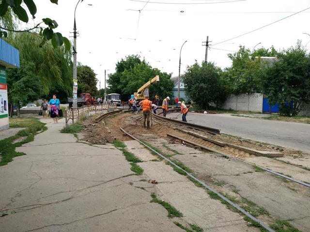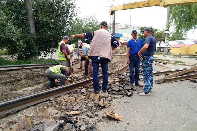 1 августа служба путей КП КГС «Транспорт» проводила работы по капитальному ремонту трамвайных путей на повороте улиц Волжской и Дунайской.