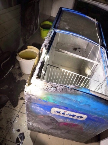 Прибыв на место специалисты Службы спасения «101» установили, что пожар возник в отдельно стоящем торговом павильоне. Огонь повредил входные двери и морозильную камеру на площади 3 кв. метра.