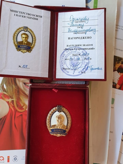 В частности, нагрудным знаком «Василий Сухомлинский» была награждена педагог Гимназии №39 города Каменского Галина Одинцова (приказ МОН № 422-к от 14.08.2019 г.).