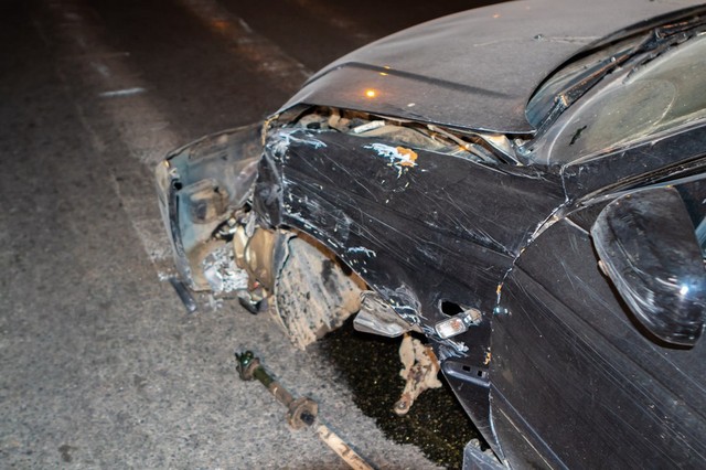 От удара у Honda оторвалось колесо. Происшествие обошлось без жертв, но на какое-то время авария ограничила движение транспорта в одной полосе.