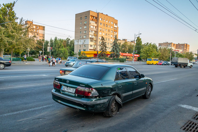25 августа около 19:00 на проспекте Слобожанском случилось ДТП. Chevrolet колесом зацепил автомобиль Mazda.