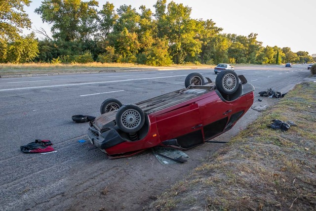 В Днепре на Малиновского из-за мопеда перевернулся ВАЗ