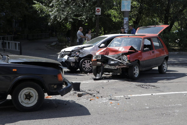 27 августа, в 11:40, в Днепре столкнулись три автомобиля: два Renault и ГАЗ. ДТП случилось на улице Богдана Хмельницкого, 27.