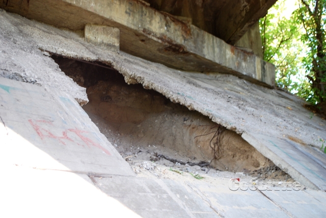 Журналист побывал на мосту. Осмотрел, в каком состоянии находится его основание. Конечно, сотрудники газеты не эксперты в данном вопросе. Но визуально заметно, что в некоторых местах бетонное основание моста начало разрушаться.