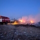Из-за сильного ветра огонь быстро распространялся по открытой местности и уже успел перекинуться на территорию местной свалки бытовых отходов.